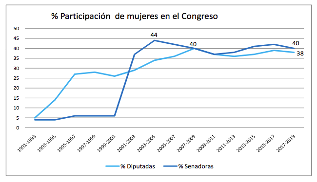 Nuestro país, junto a Costa Rica (1990), fue uno de los primeros países en Latinoamérica en introducir el cupo femenino en 1991, con la sanción de la Ley Nº 24.012. Esta medida de acción afirmativa contribuyó considerablemente en aumentar la representación de las mujeres en el Congreso de la Nación al establecer un piso mínimo de un 30% en la conformación de las listas partidarias para los cargos legislativos nacionales. La aplicación de esta ley en la Cámara de Diputados fue casi inmediata o instantánea, mientras que en el Senado recién se tornó operativa en 2001, 10 años después de su sanción.