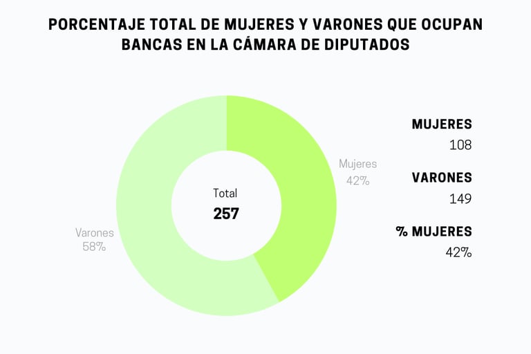 A lo largo de los años, la legislación ha permitido garantizar una representación sustancial de las mujeres en las asambleas legislativas nacionales. El desafío radica en transformar estas cifras en una realidad sostenible en el tiempo. No obstante, los varones siguen siendo mayoría en este órgano del Estado.