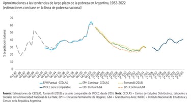 La pobreza estructural se mantiene por encima del 25%, con picos superiores al 50% durante las crisis.
