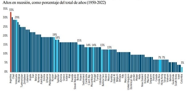 En los últimos 70 años, Argentina fue el país con mayor cantidad de años en recesión del mundo.