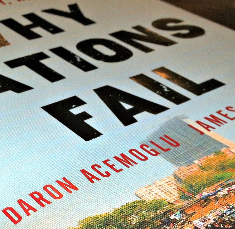 “Por qué fracasan los países” (2012) de Acemoglu y Robinson analiza cómo las instituciones determinan la prosperidad de los países. Ha recibido críticas por su énfasis institucional y simplificación histórica, pero el libro amplía el debate sobre desarrollo económico al incluir el impacto del colonialismo y ofrecer un enfoque más integral que considera política, historia y economía.